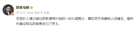 9月5日,蔚来汽车品牌与传播助理副总裁马麟在微博发文称,“发现有人通过微信群散播两年前的一起车祸图片。幕后黑手消费他人的痛苦亿鑫网,最终伤痛会降临到施暴者自己身上。 ”