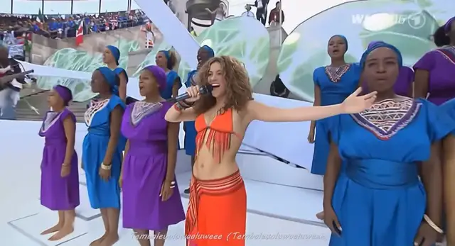 但夏奇拉和足球的缘分不仅限于此,四年后的南非世界杯,她又带着新鲜出炉的甩臀舞+双掌合十舞蹈动作,唱红了这首本世纪最火的世界杯主题曲《Waka Waka》。