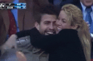 热恋期那阵儿俩人可谓产狗粮高手,日常就是看台上亲亲抱抱秀恩爱,皮克还为夏奇拉自创了一个进球庆祝手势。
